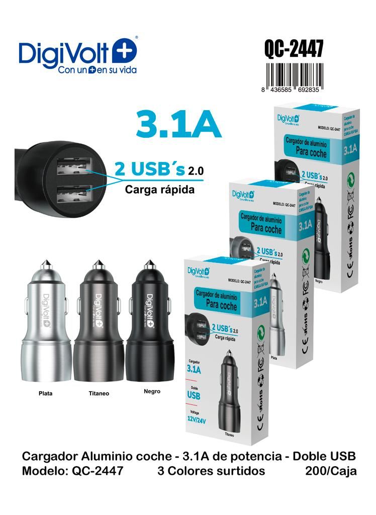 / QC 2447 CARGADOR COCHE 2USB 3,1A
