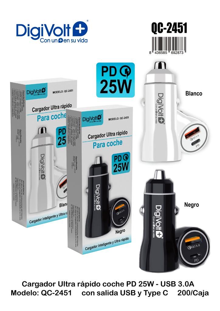 / QC 2451 CARGADOR COCHE USB/TYPE C 25W